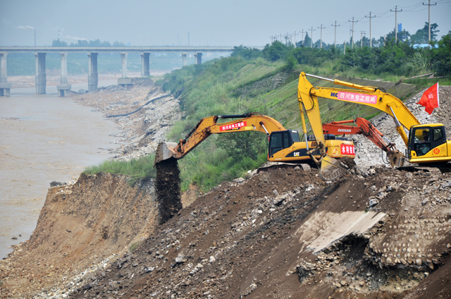 在红岩分干渠穿石亭江涵洞、人民渠干渠穿石亭江涵洞两处险情最重的工地上,人民渠一处、省水利水电工程局的领导和施工队伍辛勤工作着,挖掘机、装载机、推土机、运输车轰鸣,抢险工作有序开展,水利铁军们正竭尽全力保卫着灌区安澜和粮食丰收。