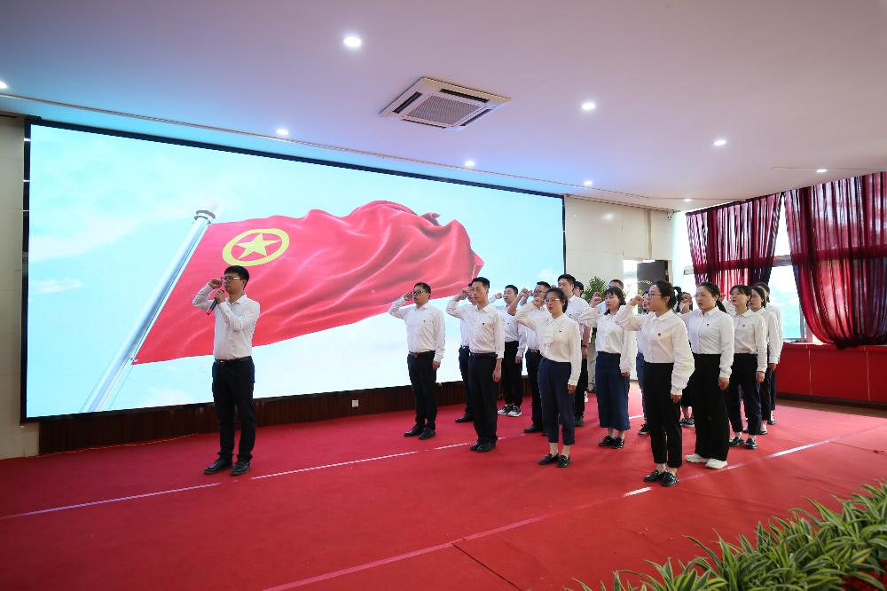 “我志愿加入中国共产主义青年团,坚决拥护中国共产党的领导……”主题团日活动在庄严的入团宣誓仪式中拉开序幕。团员青年高举右拳,在鲜艳的团旗下庄严宣读入团誓词,铿锵有力的誓词回荡在现场每一位青年心中。