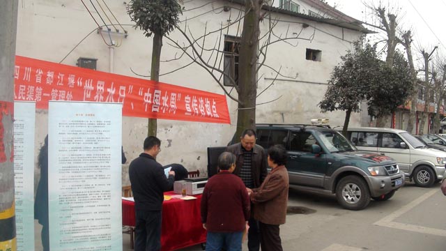 我处对“世界水日”和“中国水周”宣传工作高度重视,组织成立了宣传领导小组,对该项工作进行了专门布置,确定了以《水法》、《水污染防治法》、《四川省都江堰水利工程管理条例》为主的水法宣传内容。水利综合监察大队进行认真准备工作,下载刻录了《人?水?法》宣传光碟,精心印制了宣传标语,制作了宣传展板,并对各管理站水法宣传活动提出了具体要求。
