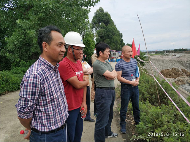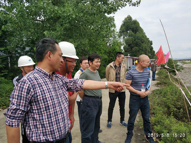 在人民渠一处2018年水毁修复加固青白江团结堰在建工程攻坚阶段,5月8日,都管局张开勇副局长带队检查指导我处2018年水毁修复加固工程建设管理工作。