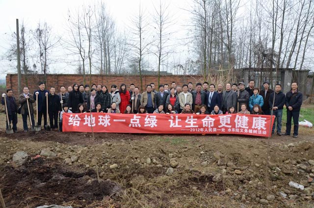 在纪念“中国水周”活动之际,3月23日,人民渠一处和水科院积极响应关于深入开展学雷锋活动的号召,组织两单位干部职工、团员青年80余人,在位于绵竹境内的人民渠石亭江养护段开展了以“给地球一点绿 让生命更健康”为主题的义务植树活动。