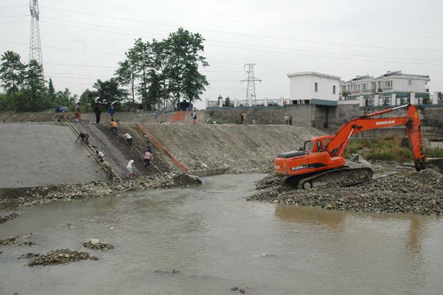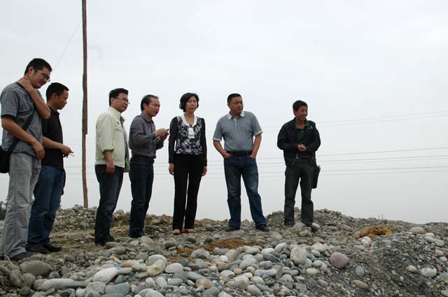 5月23日,处长王世容在副处长赖剑、总工李国贤的陪同下深入清白江大河同心堰段检查指导同心堰枢纽拦河坝临时度汛工程。