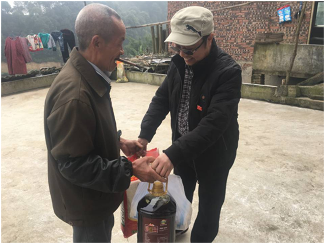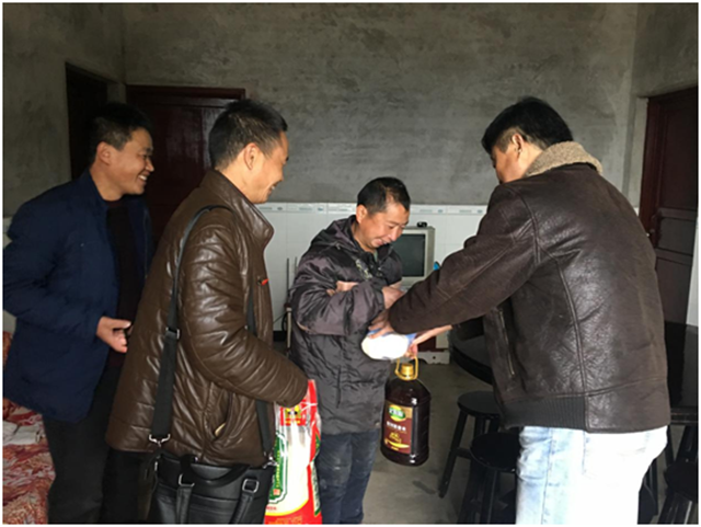 参与“一对一“结对帮扶的支部书记、党员干部分�e为振武村7户结对贫困户、新寨村15户结对贫困户送去了慰问品。通过一对一入户走访交谈,帮扶人员了解了贫困户的基本生活情况,并鼓励他们通过养鸡、养蚕、种茶等方式创造收益,发展生产,努力实现脱贫。