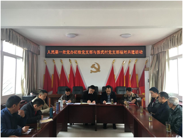 慰问结束后,我处党委办公室党支部、纪检离退工会党支部和新繁站党支部分别与振武村支部、新寨村支部开展了结对共建活动。一是共同过组织生活会,支部书记分别讲了党课,全体党员、入党积极分子一起学习了《中国共产党纪律处分条例》《中共共产支部工作条例(试行)》。二是交流支部工作,指导村党支部严格落实“三会一课”制度。三是帮助村党支部培养入党积极分子,对村入党积极分子宣讲党的知识,发放十九大党章公开课资料。另外,在新寨村召开的扶贫工作调研座谈会上,新寨村党支部书记向全体参会党员通报了帮扶资金使用情况。