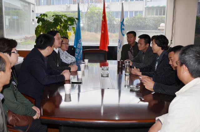 4月19日,绵竹市水务局一行在绵竹市副市长张丽珂、水务局局长杨成富的带领下莅临我处进行工作交流。