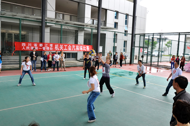为丰富职工业余文化生活,倡导文明健康的休闲娱乐方式,增强职工团队精神和凝聚力, 2013年5月13日人民渠一处机关工会在彭州市体育中心开展了气排球比赛活动。总工程师李国贤、党委委员马元、杨琳亲临现场参加了比赛。