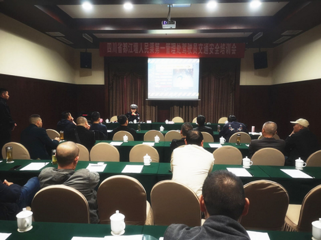 会议特别邀请彭州市公安局交通警察大队民警对参会人员进行了道路交通安全方面的讲解授课。培训警官通过PPT课件中让人触目惊心的交通事故案例以及亲身参与事故处置经历,回顾、分析了当前道路交通安全形势,向参会人员强调遵守交通法规的重要性,给大家敲响交通安全警钟。并以案说法,讲解了超速超员、疲劳驾驶、分心驾驶等违法驾驶行为的危害,告诫驾驶员要树立高度的责任心,为了自身和他人的出行平安,掌握好手中的方向盘。