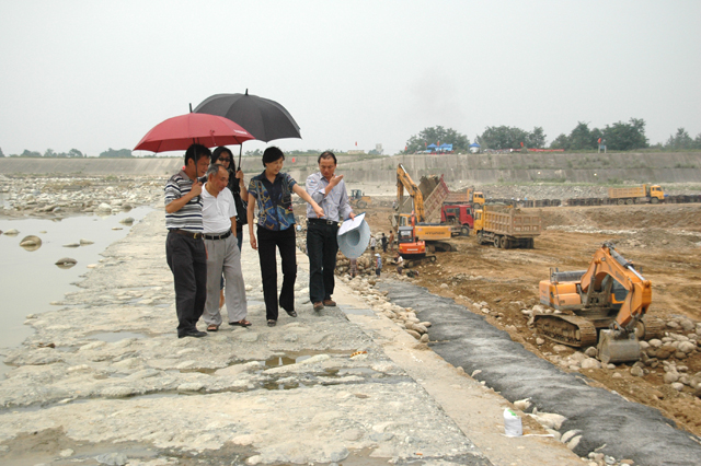 顶着骄阳、冒着酷暑,处领导、参会人员和现场工程技术人员踩着凌乱的碎石,深一脚浅一脚来到人民渠穿石亭江涵洞抢险工地察看涵洞险情。