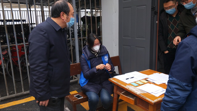 处长赖剑与东大街社区书记彭勇共商联防联控