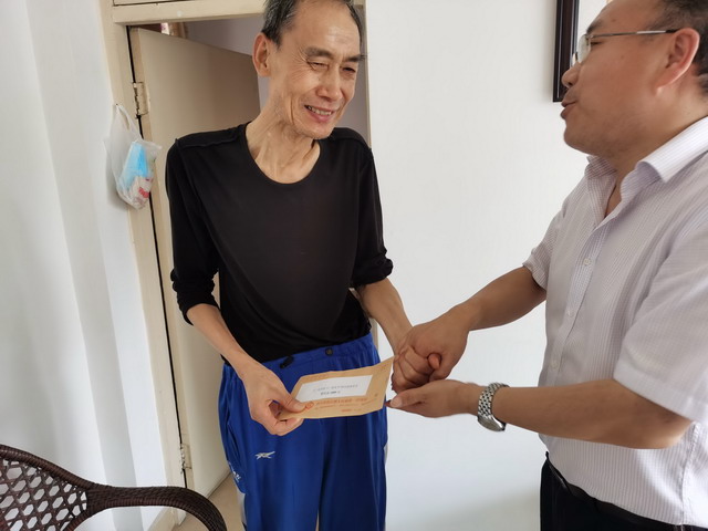 每到一处,处领导都与老党员们亲切交谈并送上慰问金,关切询问他们的家庭成员、身体状况、生产生活情况等,鼓励他们保持良好的心态和乐观向上的精神面貌,希望他们要好好保重身体。