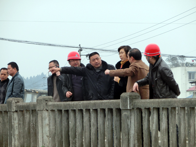 2月21日,处长王世容在副处长赖剑、总工李国贤的陪同下,检查了蒲阳河红石桥堤防应急工程建设情况。
