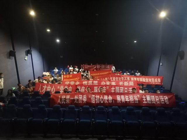 为庆祝中国共产党成立100周年,扎实开展党史学习教育,引导广大青年主动学习传承党的光荣传统和革命的伟大精神。7月14日下午,人一处积极响应厅直属机关团委组织的水利厅系统青年观影活动,集结多名优秀团员青年代表,开展“弘扬脱贫攻坚精神 展现水利青年风采”主题学习教育活动和“悟初心使命 展青年担当”主题团日活动,在峨影1958电影城观看了凉山州脱贫攻坚主题影片《山歌》,引导青年弘扬伟大脱贫攻坚精神,凝聚接续奋斗力量,充分发挥自身优势,到乡村一线建功立业,继续为乡村振兴贡献青春力量。