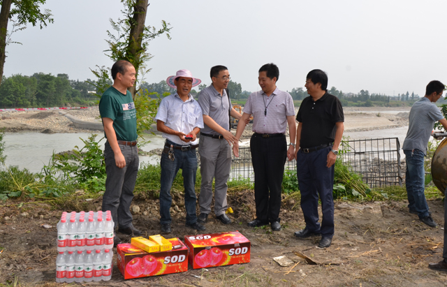 “7.9”洪水导致青白江拦河堰坝多处损毁,为解决青白江灌区用水困难,多处应急引水工程正加紧施工。8月1日,受处长王世容委托,纪委书记贾军容、工会主席王钦、总工李国贤一行先后来到青白江麻水河、杨柳堰临时应急引水工程施工现场看望慰问施工人员,并为他们送上了水果、矿泉水等解暑物资,表达了人民渠一处对他们的关心。
