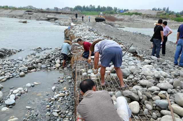 在现场,贾军容、王钦、李国贤叮嘱现场施工人员要抓紧上游来水小的有利时机加紧施工,同时要注意天气预报、上游雨情和河水流量变化,在保证安全的情况下尽快完成应急抢险施工,解决灌区的燃眉之急。