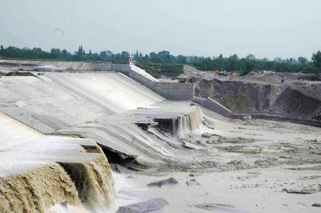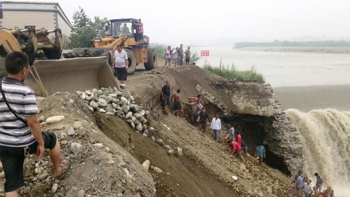 人民渠干渠穿石亭江涵洞抢险现状(8月1日)