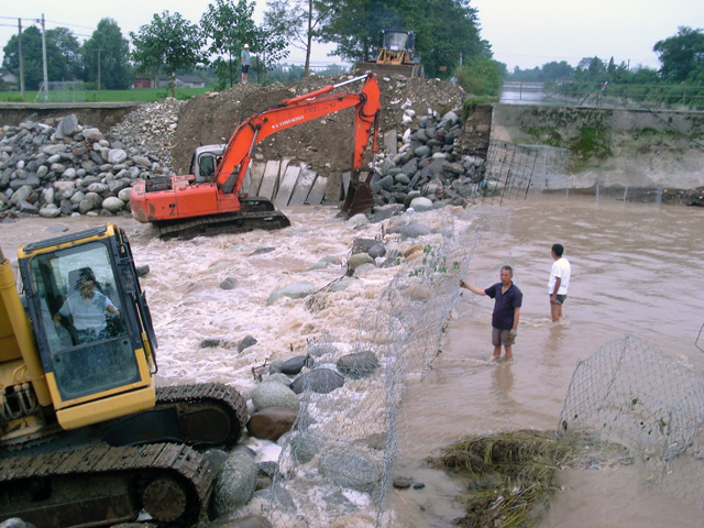 在人民渠一处和参与各方的共同努力下,人民渠水利工程的险情已基本得到控制,应急抢险工作正在紧锣密鼓实施中。险情最重、影响最大的两座穿江涵洞经过前期抢险,经受住了7月26日石亭江720立方米/秒洪水的考验,涵洞安全,供水安全,没有出现新的险情。