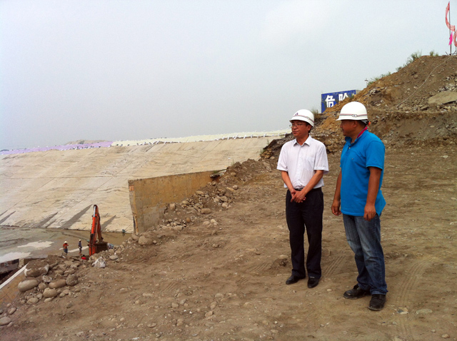 受人民渠一处处长王世容委托,副处长赖剑陪同何明俊查看并介绍了应急抢险工作的进展情况。何明俊对应急抢险工程施工进度表示满意,强调一是要加强施工质量管理,克服场地和天气等带来的种种困难,加强基础工作、施工质量控制和检验把关工作,确保工程质量;二是要利用晴好天气,在确保安全、质量的前提下,加快工程建设进度。