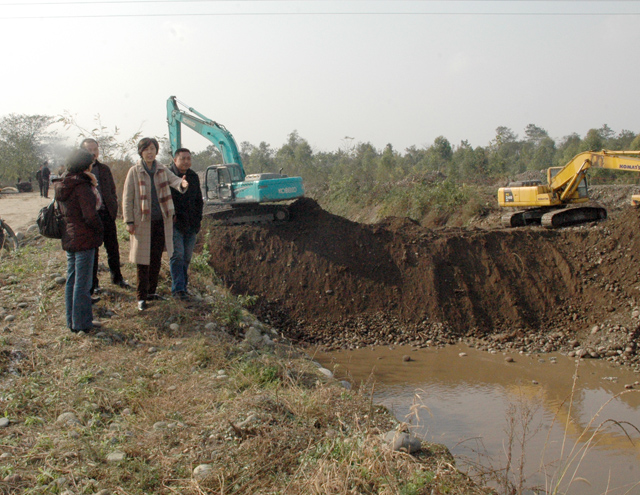 11月26日,处长王世容在副处长赖剑、总工李国贤的陪同下深入渠首站、什邡站和永兴站检查指导工程冬修工作。