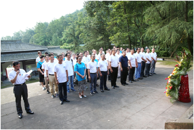 此次会议由缅怀李冰仪式和学术交流会两部分组成。8月7日上午,全体参会人员来到位于什邡市洛水镇的李冰陵,在都管局局长孙小铭带领下,参会人员着装整齐、神情严肃的来到李冰像前,向李冰敬献花篮、行三鞠躬礼,深情瞻仰缅怀都江堰创始人,并向伟大的治水先贤致以崇高敬意。