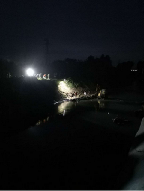 8月13日马牧河养护段小马公路桥下深夜施工抢险现场