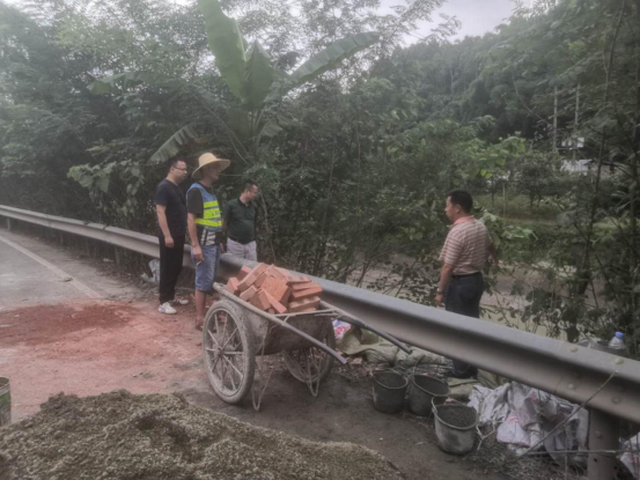 8月15日处工程科同志到彭州站检查水毁工程抢修情况