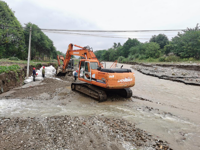 9月14日晚20时至15日凌晨,人民渠一处灌区普降大到暴雨,其中什邡市单点最大降雨量达220毫米,彭州市168.5毫米,绵竹市151.8毫米。9月15日凌晨6点,红岩分干渠白水河涵洞受损,严重危及涵洞安全。人民渠一处高度重视,处长赖剑要求:一是加强与地方防汛机构沟通联系,充分依靠地方政府组织抢险;二是合理制定抢险方案,抓紧组织抢险,避免险情扩大;三是加强现场抢险安全管理,确保抢险过程中人员、工程安全。
