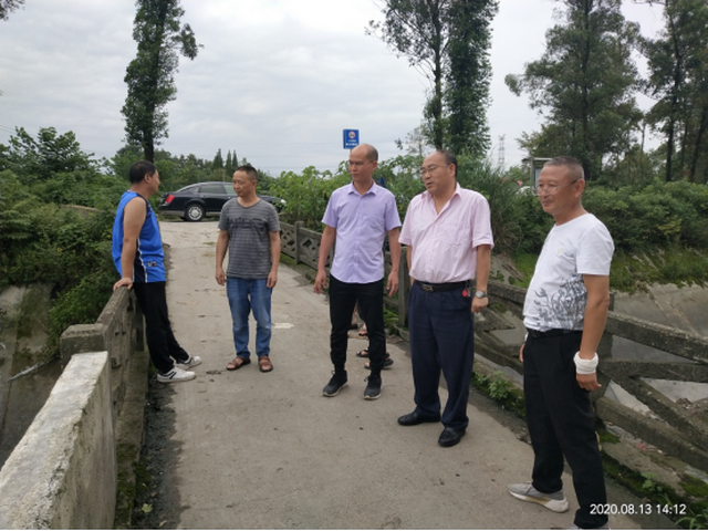 8月13日,谢羽书记一行到彭州站查看干渠水毁情况