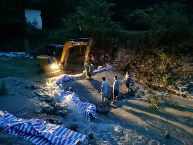 8月13日,彭州站抢修干渠桩号0+400水毁渠道