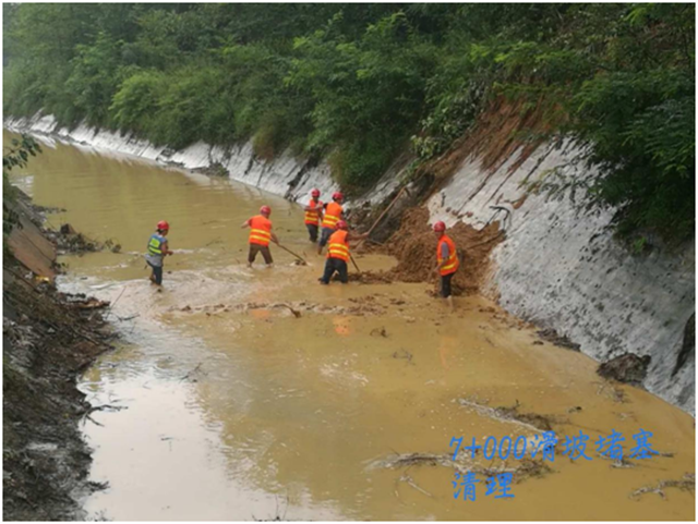 2018年7月11日,我处灌区再次经历了一轮强降雨。受本次强降雨影响,我处多处水利工程损毁严重。据统计:截止7月17日,全处累计受损共计166处。其中,蒲阳河(青白江)河堤垮塌约13.64公里,渠堤损毁约0.8公里,渠坡多处出现裂缝,多处土方垮堵塞渠道,渠堤道路有20余公里不同程度受损,多处接水护坡严重受损,麻水河拦河坝、三圣寺滚水坝等建筑物损毁,前进渠倒虹管顶覆盖被洪水冲开。