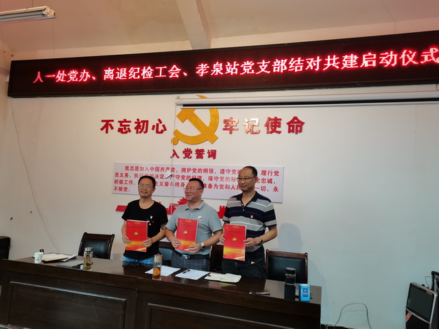 活动会议上人一处孝泉站党支部分别与人一处党办党支部、纪检离退工会党支部签订了结对共建协议书,结合各支部党建工作发展情部进行了交流发言。副处长贾军容对三个支部的结对共建活动表示肯定,希望通过结对共建活动,促进各支部之间的交流学习、促进党建工作的优势互补,共同推进党建工作的新发展;同时鼓励全体党员要立足本职,做好本职工作,加强学习自我提升,起好党员先锋模范带头作用。