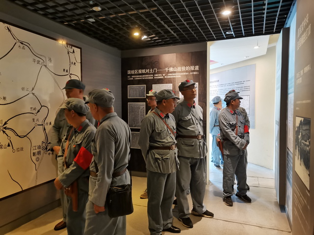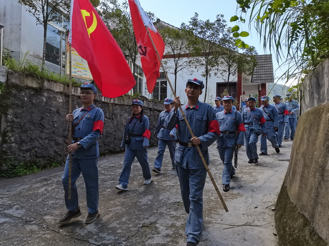 在教育基地,我们穿上了红军服,头戴八角帽,整装列队,感受五星照耀的光荣,在2.5公里的环形红色走廊,我们爬山坡、过树林,沿着蜿蜒陡峭的坡道,切实体会了当年红军“小米加步抢”的艰难,亲身感受革命精神。