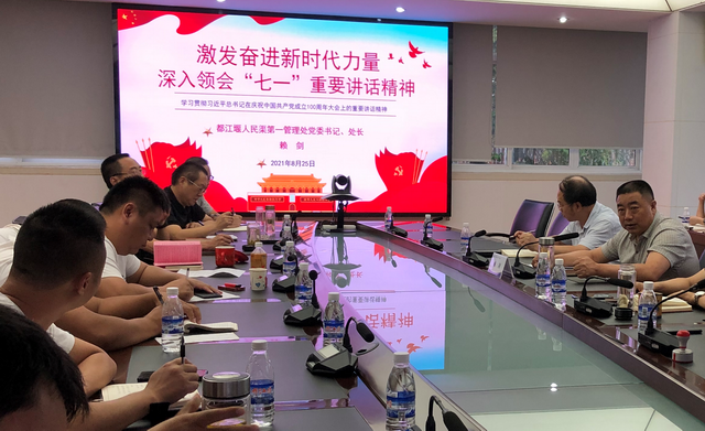8月25日,都江堰人民渠一处办公室、新繁站、供水科党支部结对共建启动仪式结束后,处党委书记、处长赖剑以《深刻领会习近平总书记“七一”重要讲话精神 激发奋进新时代力量》为题为3个联系党支部20余名党员、非党中层干部和入党积极分子讲了一堂生动党课。党课从深入领会中国共产党百年为国家、民族创造的丰功伟绩,深入领会中国共产党百年经验启示,深入领会百年奋斗主题、深入领会伟大建党精神、深入领会中国共产党是中国人民的中流砥柱5个“深入领会”对学习“七一”重要讲话精神作了专题辅导,推动党员不断增强“四个意识”、坚定“四个自信”、做到“两个维护”。