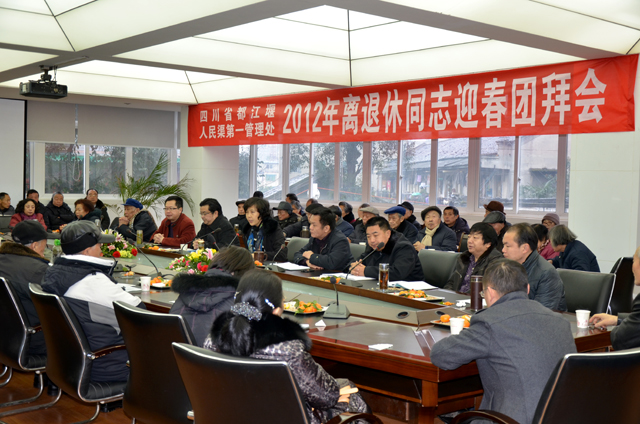 凯歌高奏辞旧岁,豪情满怀迎新年。1月5 日,人民渠一处在机关二楼会议室召开了2012年处机关离退休老同志、提前退养同志春节团拜会。全体班子成员、各科室负责同志共100余人参加了团拜会,与离退休老同志欢聚一堂,喜迎新春。
