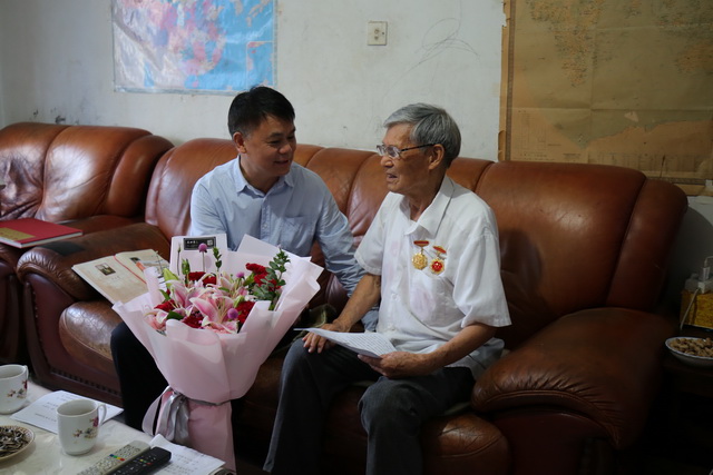 座谈会前,刘辉一行在人民渠一处处长赖剑陪同下,代表省水利厅到左自恩家中走访慰问。刘辉亲自为左自恩送上了鲜花和慰问品,表达了省水利厅对老兵的关怀和问候。并与左自恩亲切交谈,详细了解他的生活情况和身体状况,鼓励左自恩保重身体,并祝愿他健康长寿。