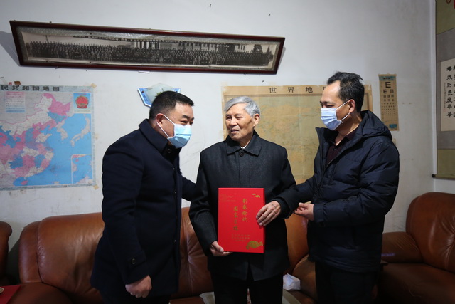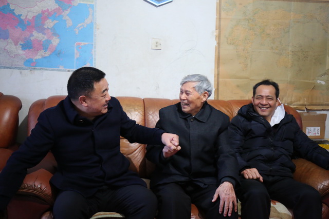 2021年2月4日,春节前夕,人民渠一处处长赖剑、党委书记汤传波、纪委书记谢羽带队走访慰问离休干部左自恩,送上组织的关怀和新春的祝福。