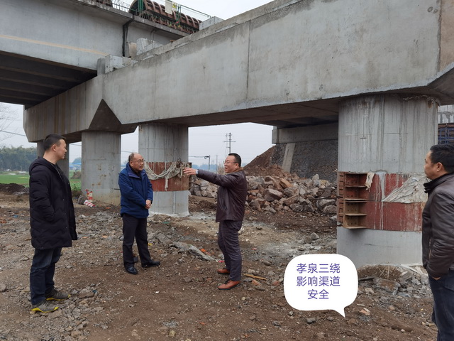 1月29日,纪委书记谢羽一行到人民渠四期干渠77+450处中铁建四川德都高速公路有限公司G0511线德阳至都江堰高速公路DDTJ1标段跨人民渠干渠违法施工现场,检查相关工作。
