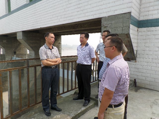 8月22日上午,骄阳似火,都江堰管理局尹邦军副局长率局供水处同志一行来到人民渠一处灌区,查看“7.9”洪水水毁情况指导灌区用水工作。