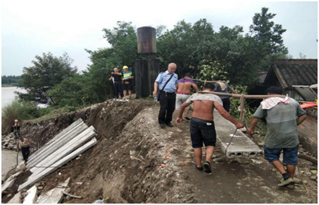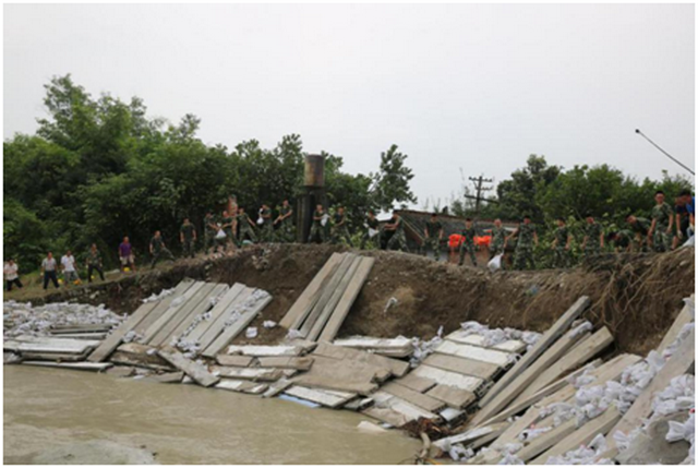 抢险队伍来了。唐元镇党委书记吴晋立即率领村镇防汛基干队、民兵奔赴现场,武警黄金部队第十二支队支队长李亚军率武警官兵紧急驰援,即刻投入到应急抢险工作中。