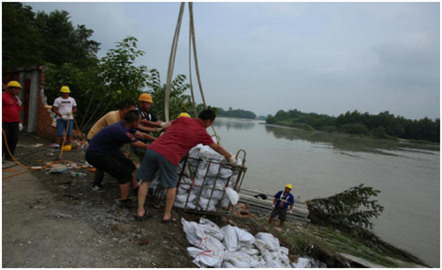 抢险物资来了。260张预制板、50方大卵石、75方连砂石、50条铅丝笼、2.2万条编织袋被迅速运送到现场。