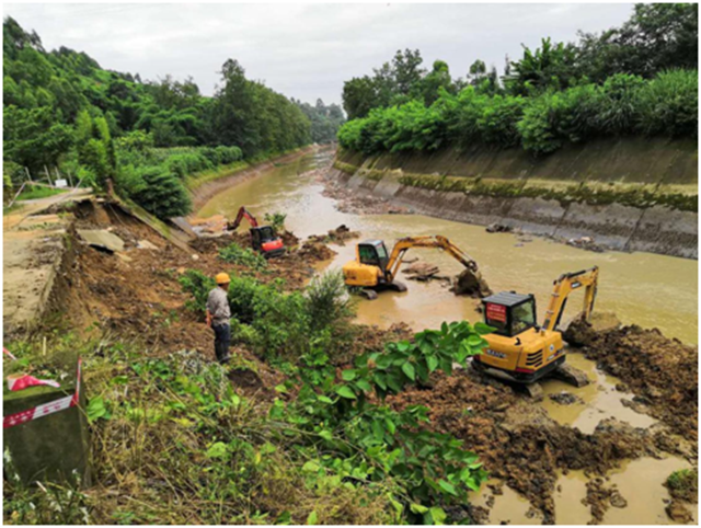 7月8日以来,洪水造成人民渠一处所辖水利工程受损70余处,截至7月12日12时,蒲阳河(青白江)河堤垮塌总长约7.5公里,人民渠干渠渠道护坡垮塌总长约0.4公里,红岩分干渠首段左岸山体滑坡造成渠道堵塞,部分渠系建筑物不同程度受损,工程安全、供水安全受到严重威胁。