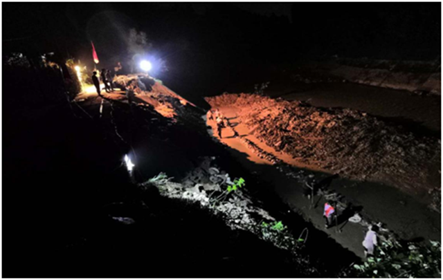灾情就是命令。处防汛抗旱指挥部指挥长、处长赖剑连续召集召开处防汛抗旱指挥部第三次、第四次会商会,分析灾情,制定方案。按照“保安全、保供水、守底线”的要求,人民渠一处迅速组织50余名技术人员组成12个应急抢险小组,由处领导、各管理站站长带队,奔赴应急抢险一线,调集人员和机械争分夺秒开展应急抢险工作。