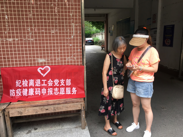 为扎实做好“不忘初心,不负韶华”主题党日活动,针对从彭州市天彭镇东街社区了解到的社区尚有部分居民未注册“天府健康码”情况,为进一步落实落细新冠肺炎疫情常态化防控措施,巩固阶段性防控成果,纪检离退工会党支部组织支部党员于7月3日,到东街社区的东南市街77号和88号小区,开展了“防疫健康码”申报注册志愿服务。