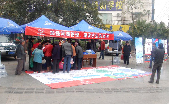 为了切实开展好今年水法宣传周活动,人民渠一处积极谋划筹备,制定了宣传活动方案,并作出专项部署和安排。3月24日,在彭州市国贸大楼广场设置水法宣传站,向过往市民宣传水法律法规,局支队到场指导。在现场活动中,水政执法人员认真向市民讲解水法知识,发放水法律法规资料,积极宣传水生态文明建设、水利法治建设,增强社会的水忧患意识和水法治观念。现场为市民答疑解惑,鼓励市民积极宣传爱护、保护水资源,共同维护好水环境。市民热情高涨、踊跃参加,现场开展的水法律法规知识有奖问答,把活动推向了高潮。现场宣传活动持续了2个小时,共发放宣传资料1200多份,收到了较好的效果。