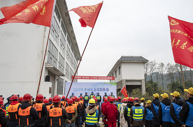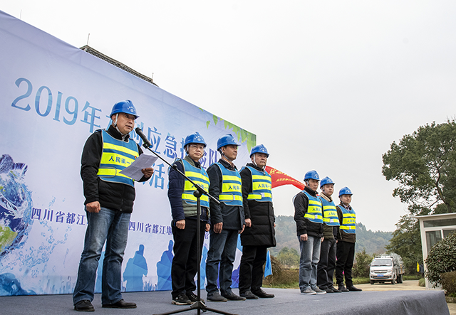 2019年12月20日,为贯彻习近平总书记防灾减灾救灾工作系列重要论述精神,以及四川省应急委员会办公室《关于深入开展2019年全省应急救援队伍练兵活动的通知》精神,按照“以人为本,安全第一,常备不懈,防抗结合”,“统一指挥、分级负责、服从大局、团结抗洪”的原则,我处立足实际,联合四川省都江堰管理局在我处渠首管理站开展了2019年水利应急抢险队伍练兵活动暨实战演练。都江堰管理局副局长吴鉴率队参加本次练兵活动。