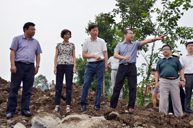 王世容处长在现场介绍了干河子水毁及抢险情况。陈新有市长对人民渠一处干部职工在险情发生后采取的科学、高速、高效抢险措施表示赞许,充分肯定了人民渠一处心系灌区群众、服务三农的优良作风,表达了对水利干部职工的慰问和感谢。陈新有指出,干河子关系到300余万亩灌面的灌溉和城镇生活、工业用水,关系到千家万户的幸福生活,关系到灌区的和谐稳定,是德阳市用水生命线。人民渠一处站在讲政治的高度,取得了该处险情抢险的阶段性胜利。陈新有表示将从物资、人力、资金方面加强对人民渠一处的支持,争取各方力量共同取得抗洪抢险胜利,确保农业大春用水和灌区和谐稳定。