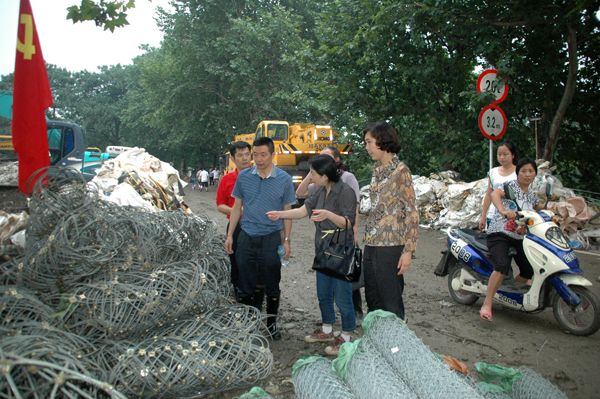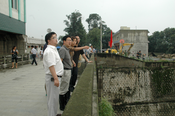 7月12日下午4时,厅建管处林凡、李根生,省农水局陈阳、王斌、李旭东,省水利院杨志宏、王文斌、魏建军赶到锦水河枢纽抢险现场,查看险情,随后陈阳主持召开了锦水河枢纽应急抢险工作协调会,针对现状,参会的领导和专家对锦水河枢纽应急抢险方案进行了会商。下午5时40分,厅建管处钟新忙完手中的工作,不顾疲劳,赶到锦水河枢纽实地察看工程险情,指导应急抢险方案。会议要求,人民渠一处全力做好应急抢险工作,请彭州市、新都区水务局做好堤防应急抢险工作,抢险过程中注意人员安全。