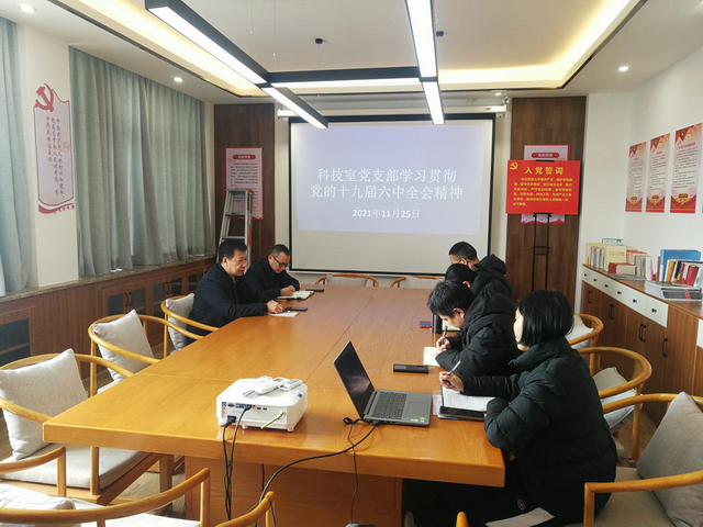 11月25日,科技室党支部在八楼会议室召开专题学习会,学习贯彻党的十九届六中全会精神,分管副处长吴平勇参加了会议。
