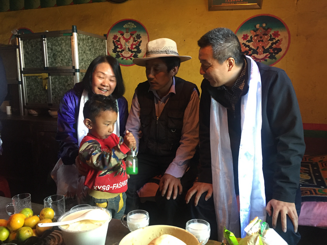 知道工作组的到来,四郎拉措一家主动迎了出来,献上了感恩的哈达。工作组的同志们与四郎拉措促膝而坐,钟新处长仔细询问了四郎拉措的家庭收入和家里的基本情况。在得知家中正享受藏区9+3教育,钟新处长很高兴,鼓励他们要努力学习,靠自己的付出和知识,过上幸福的生活。