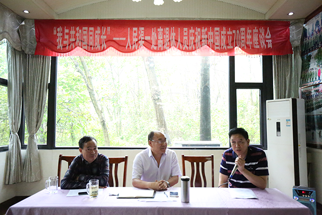 在全党开展“不忘初心、牢记使命”主题教育之际,为庆祝新中国成立70周年,9月4日,人民渠一处在彭州召开离退休老同志庆祝新中国成立70周年“我与祖国同成长”座谈会。会议由纪委书记谢羽主持。