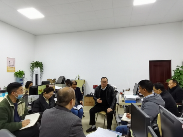 周宗剑一行实地察看施工现场后,在彭州站临时办公场地现场办公,工程科、办公室、彭州站和施工单位相关负责人就项目推进相关细节发表了意见并提出建议。